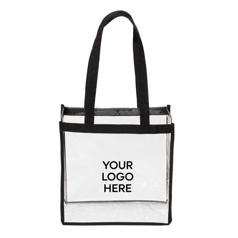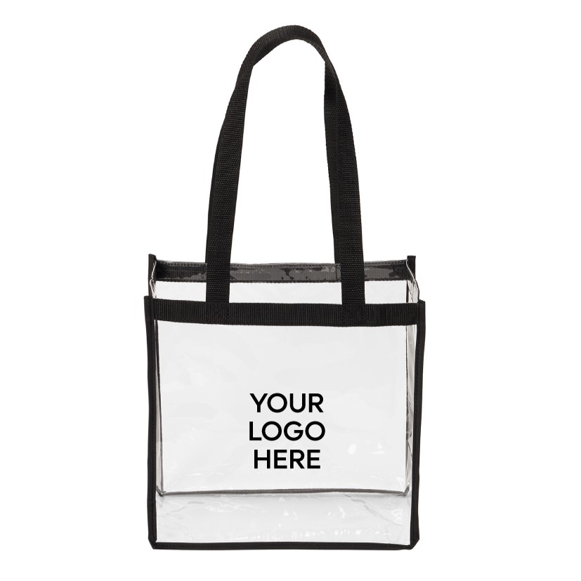 sku: BG430This see-through tote meets the policies for stadiums, concerts and events that allow clear bags. Clear PVC Polyester webbing handles and trim Dimensions: 11.75"h x 11.75"w x 5.75"d; Approx. 794 cubic inches Note: Bags not intended for use by children 12 and under.