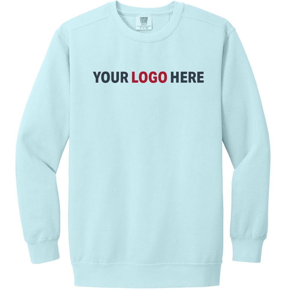 sku: 1566This Comfort Colors Ring Spun Crewnect Sweatshirt is made of 9.5-ounce, 80/20 ring spun cotton/poly. Features include soft-washed, garment-dyed fabric, 1x1 rib knit on collar, cuffs and hem, double-needle collar, twill-taped back neck, rolled forward shoulder, back patch, twill label, double-needle neck, shoulder, armhole, cuffs and hems. Logo printed using heat transfer.