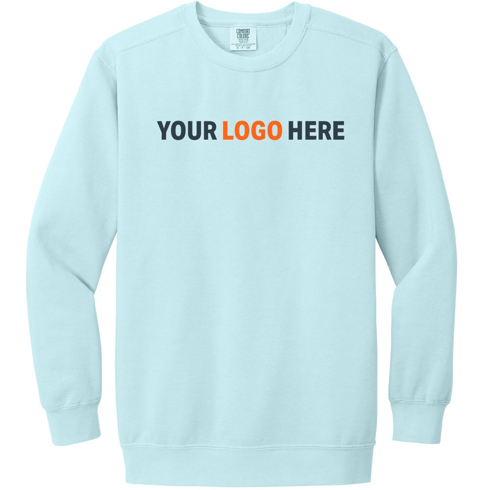 sku: 1566This Comfort Colors Ring Spun Crewnect Sweatshirt is made of 9.5-ounce, 80/20 ring spun cotton/poly. Features include soft-washed, garment-dyed fabric, 1x1 rib knit on collar, cuffs and hem, double-needle collar, twill-taped back neck, rolled forward shoulder, back patch, twill label, double-needle neck, shoulder, armhole, cuffs and hems. Logo printed using heat transfer.